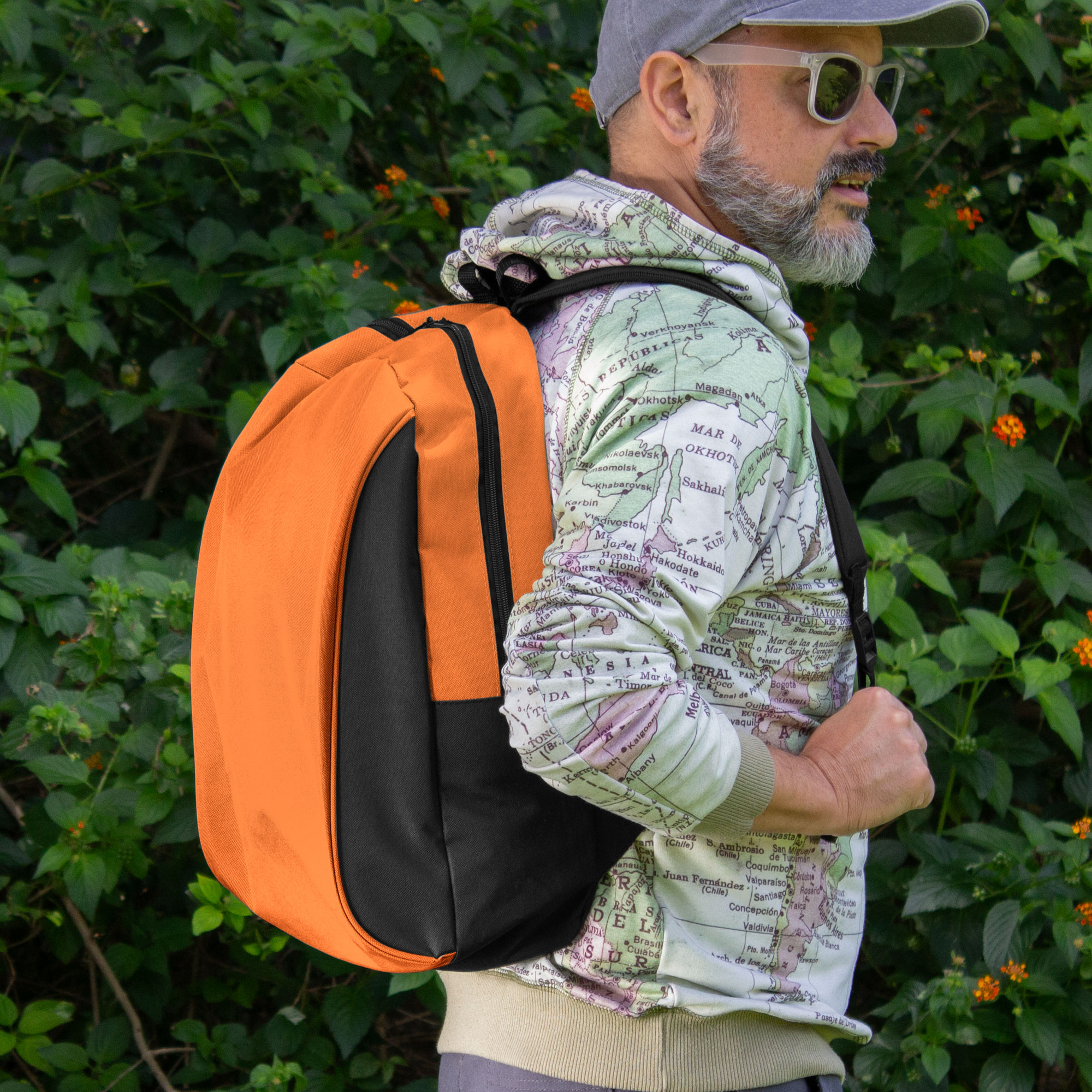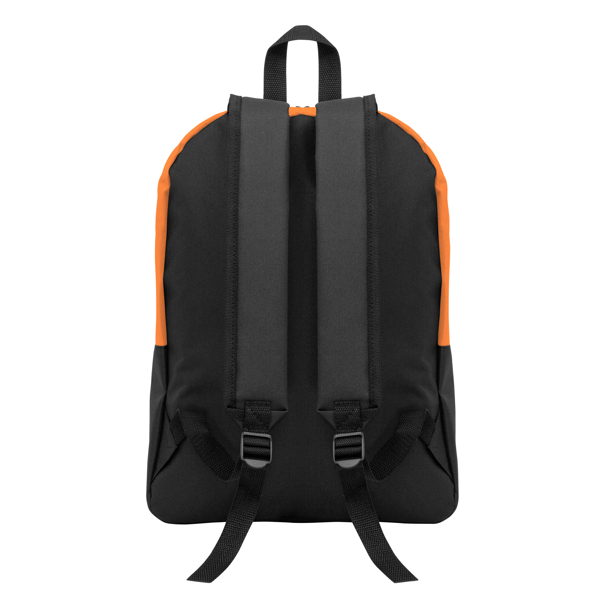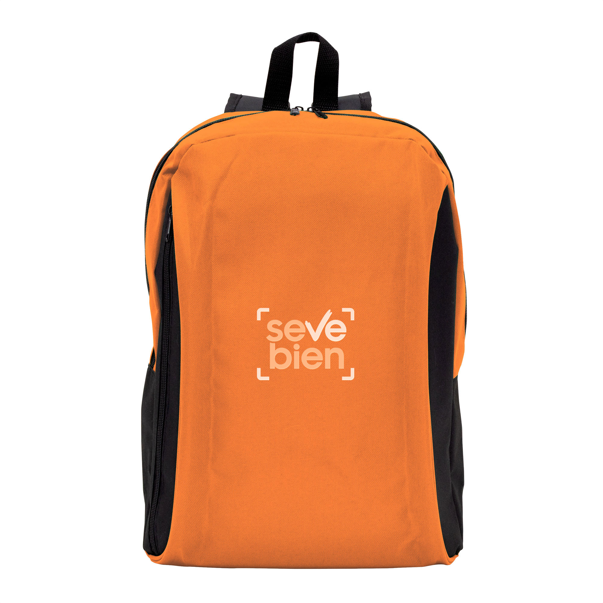 Morral urbano. Bitono (cuerpo principal de un color y laterales, espalda, correas, asa y cierres en color negro). Compartimento principal con cierre. Amplio compartimento frontal con cierre lateral vertical. Interior forrado y reforzado. Correas ajustables y espalda acolchada. Tiradores de cierres metálicos.