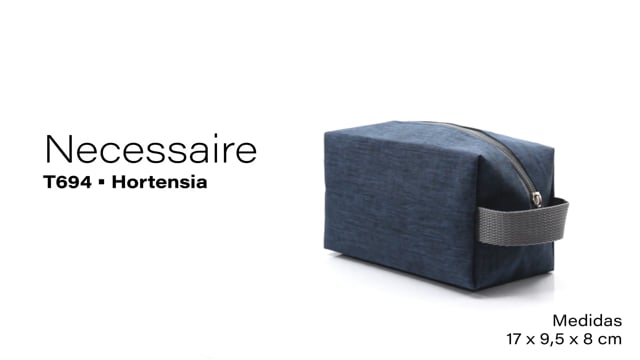 Necessaire con amplio compartimento. Interior forrado en Poliéster 210D. Cierre con tirador metálico y asa lateral en tela de color gris.