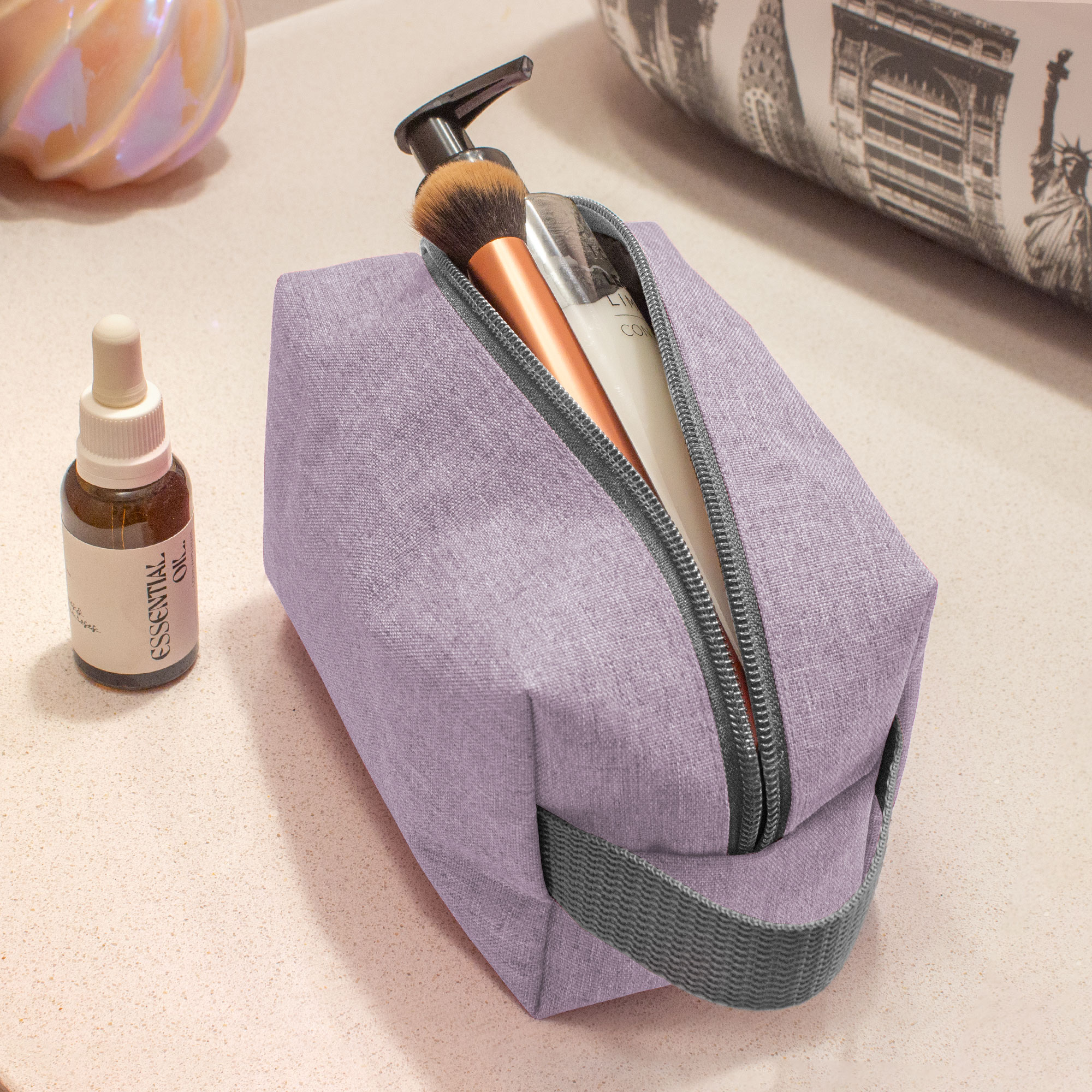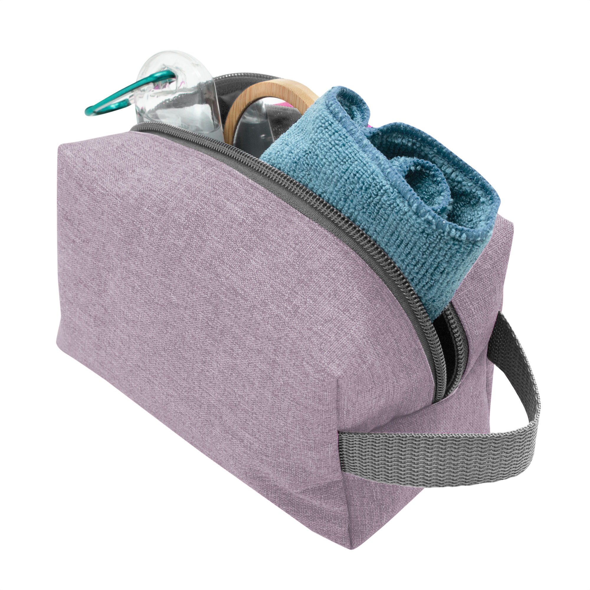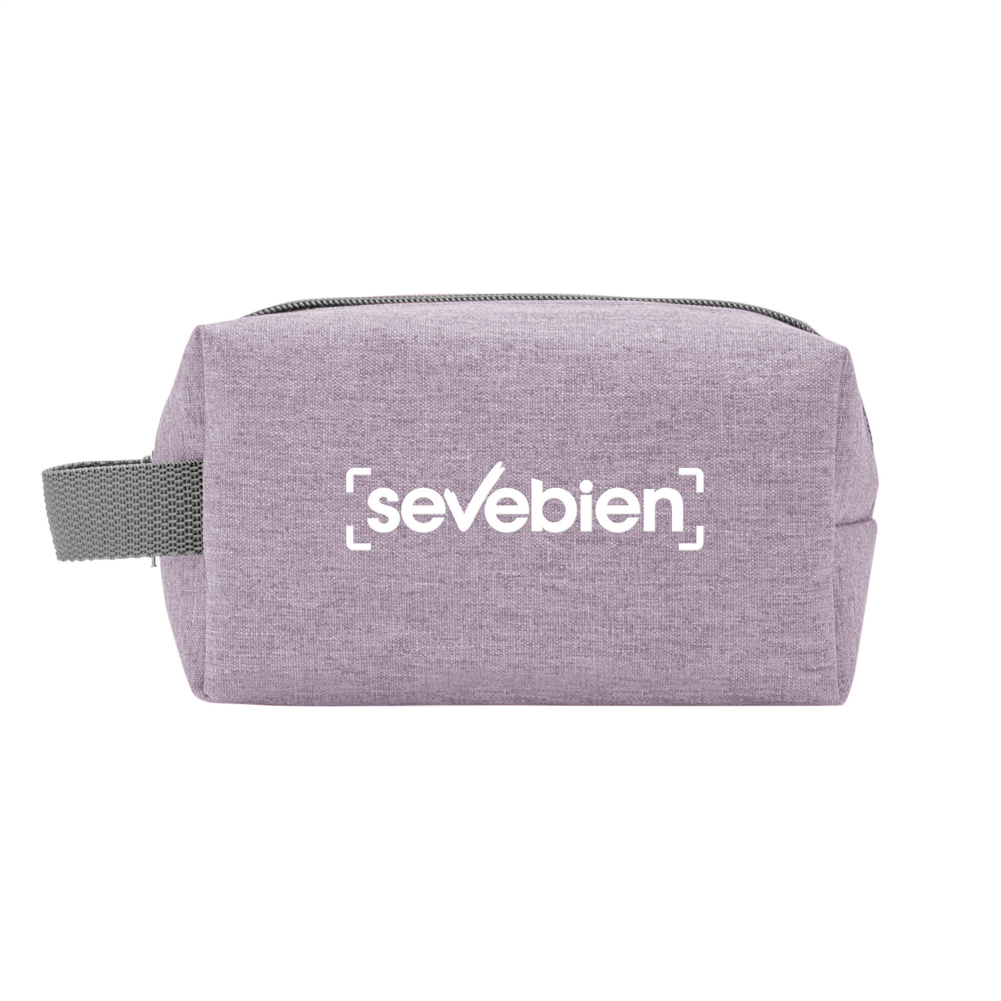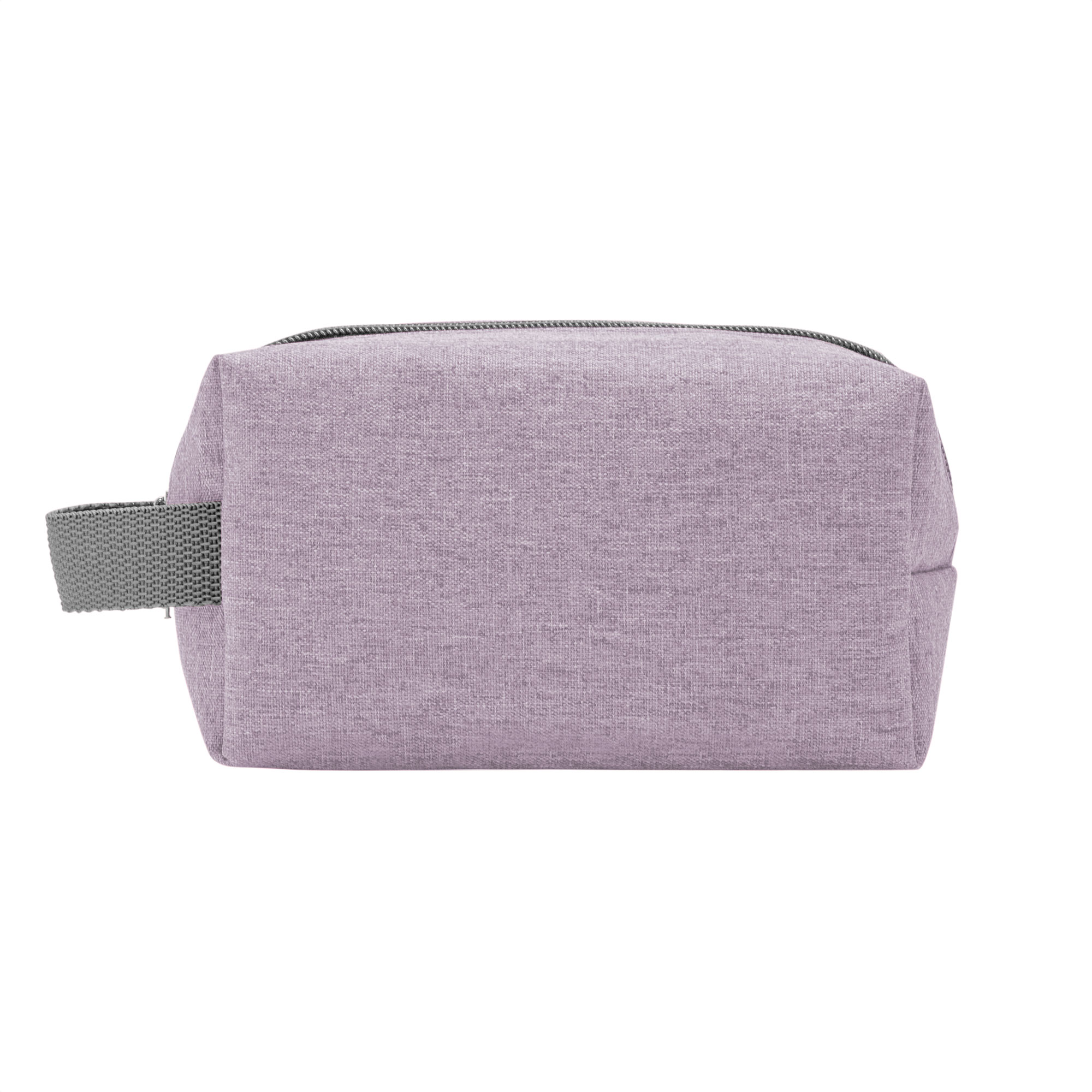 Necessaire con amplio compartimento. Interior forrado en Poliéster 210D. Cierre con tirador metálico y asa lateral en tela de color gris.