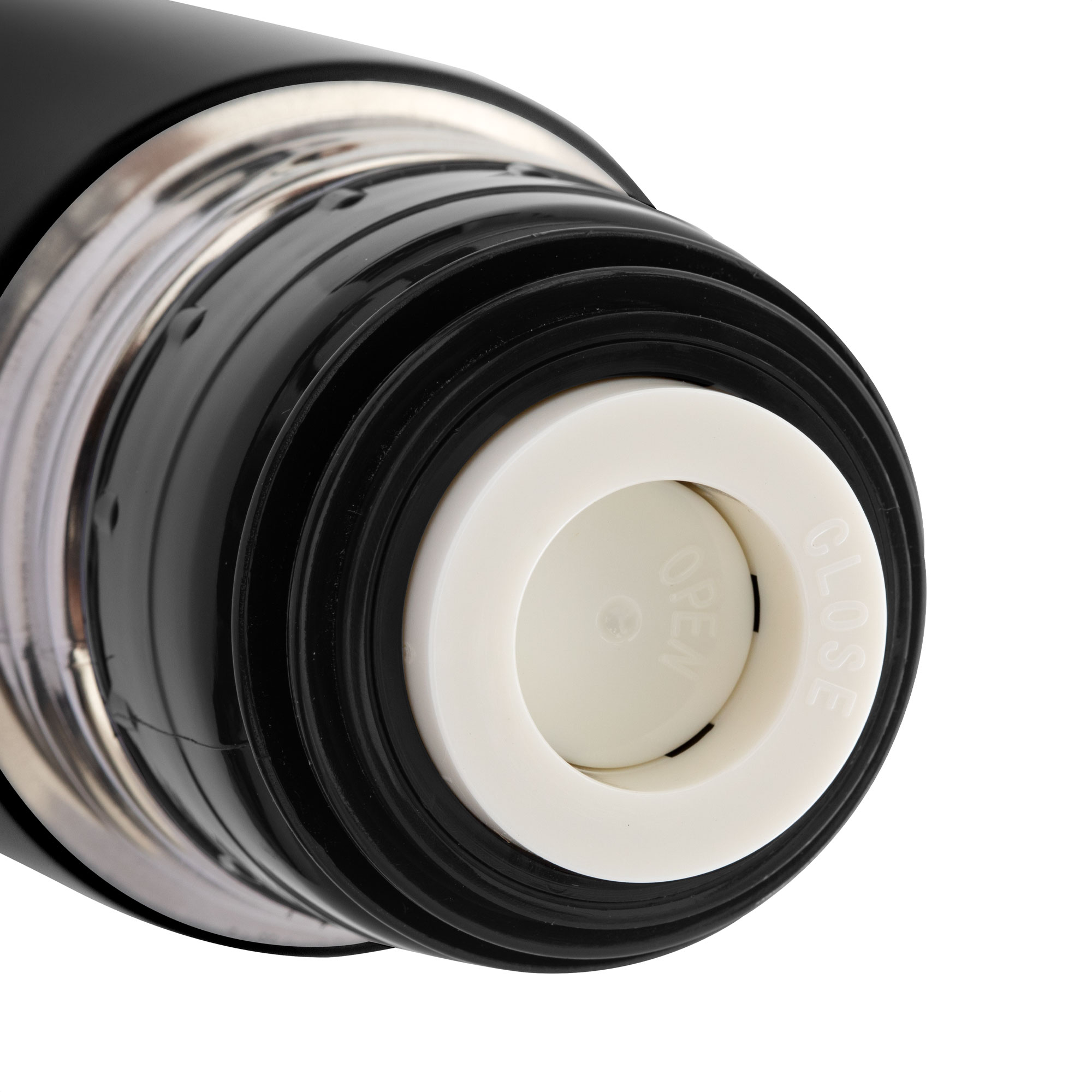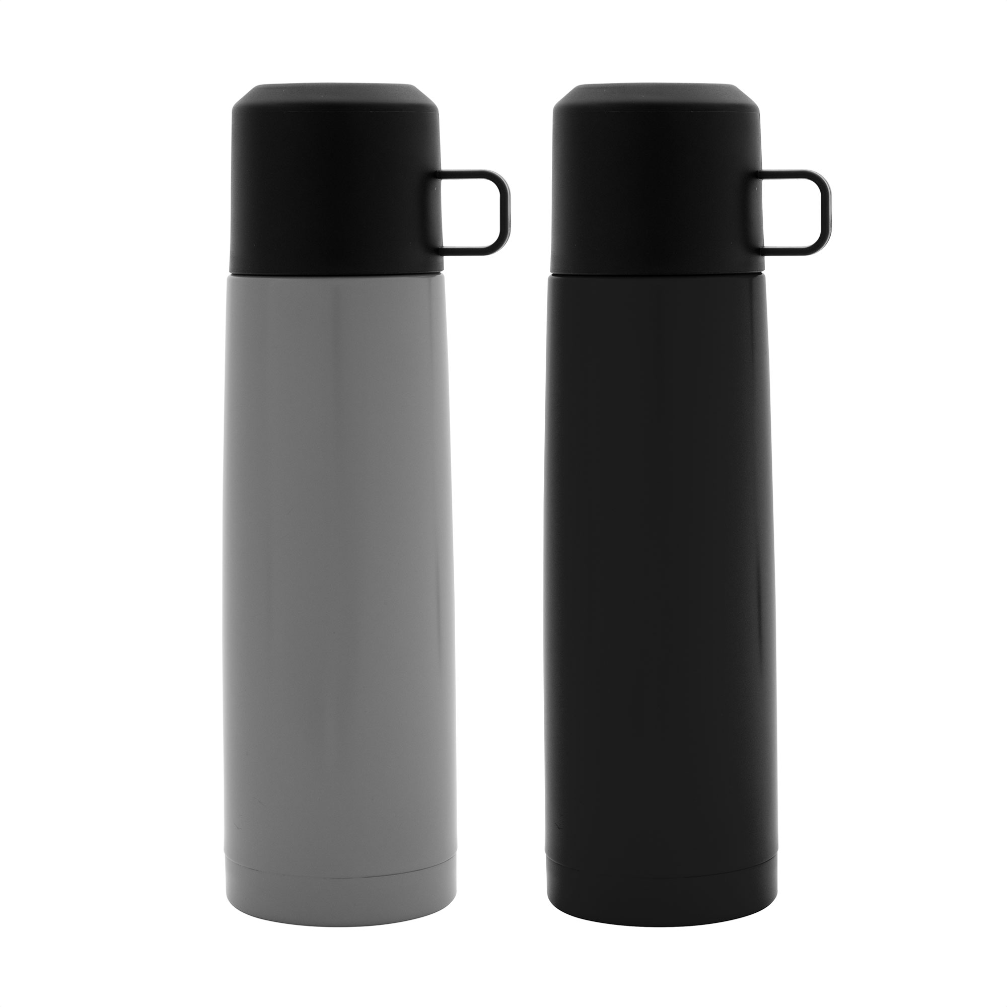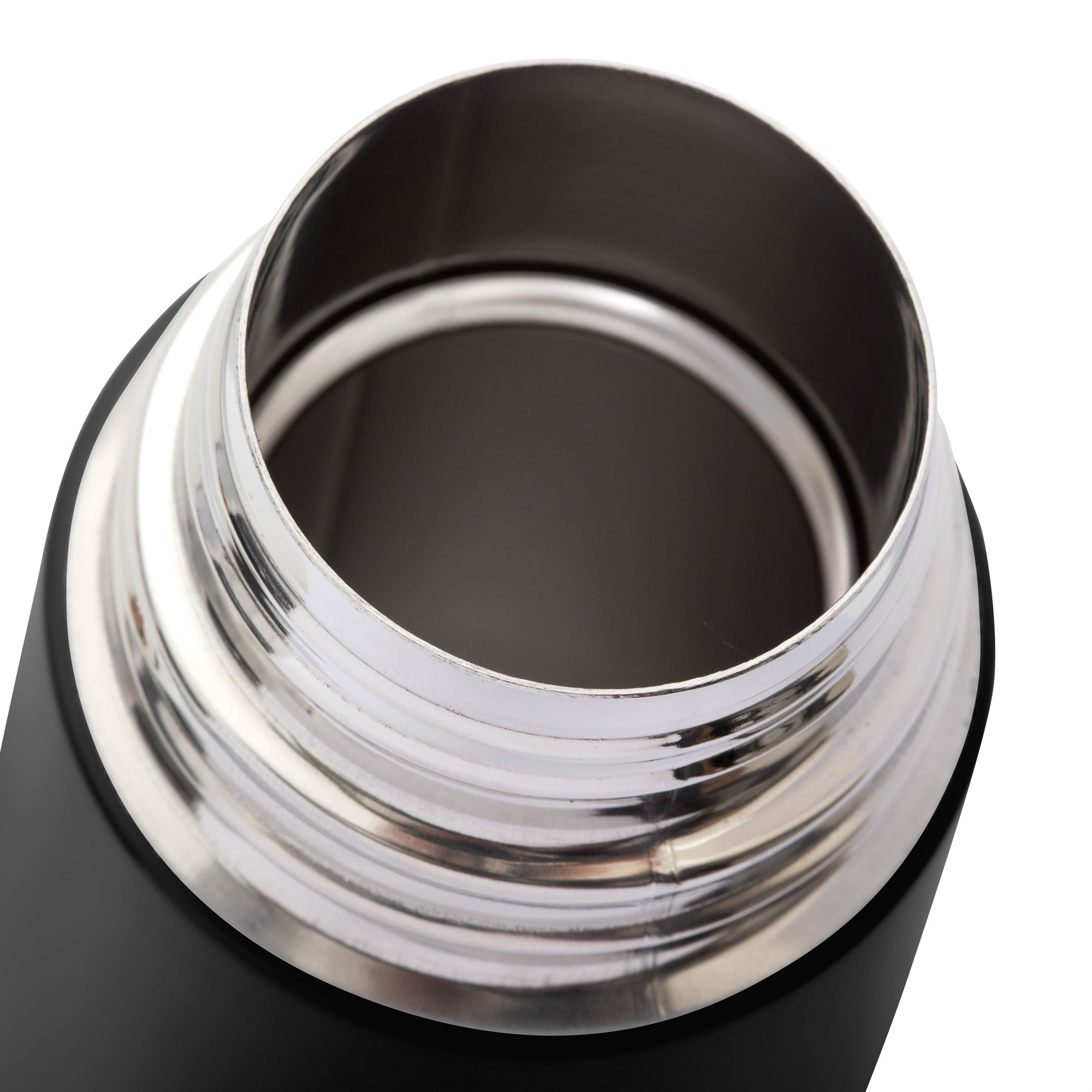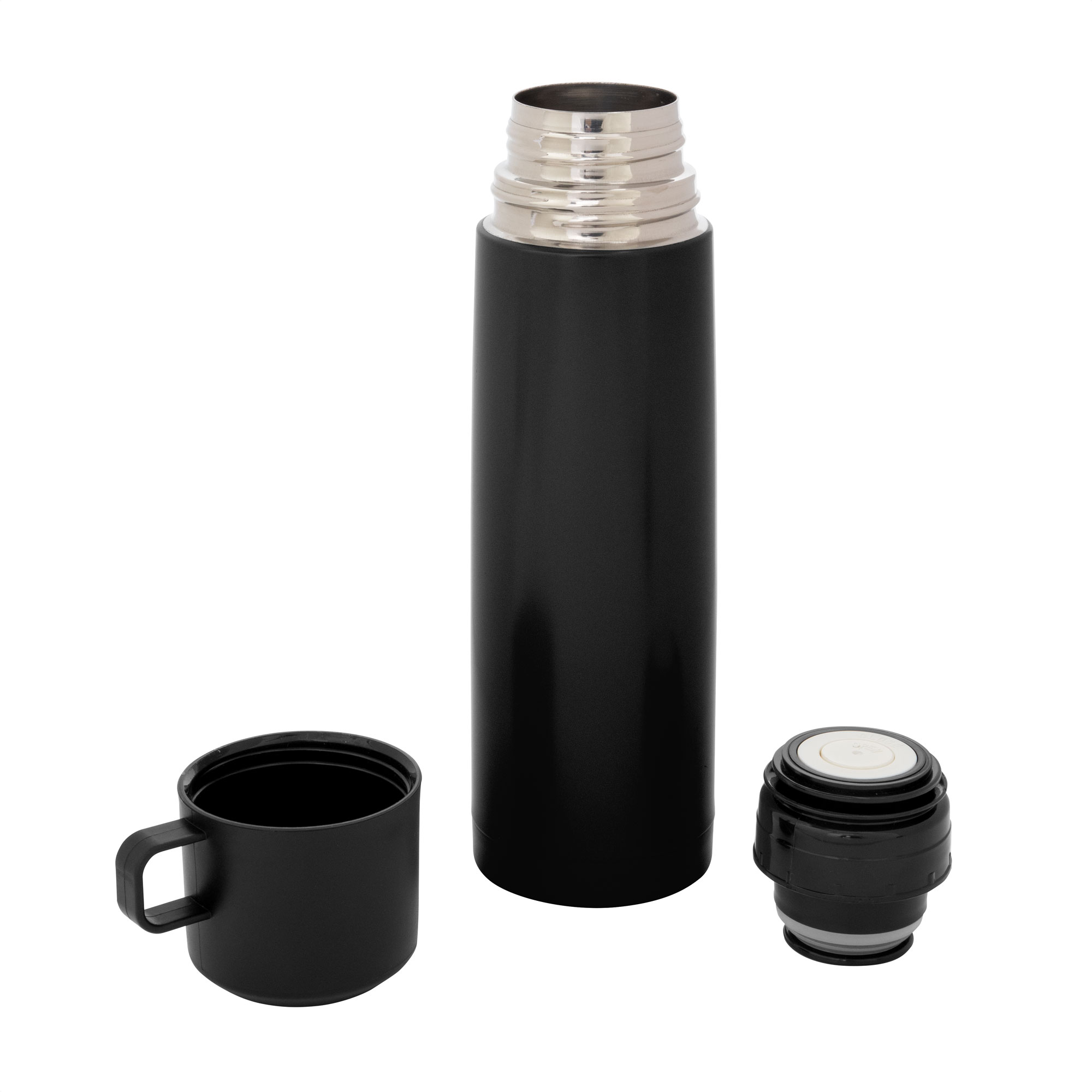 Termo con doble pared sellado al vacío. Tecnología vacuum. Acero inoxidable 304 interior / 201 exterior. Tapa y taza plásticas en color negro. Pintura acabado mate. Mantiene hasta 6 hs la temperatura de las bebidas calientes y 12 hs de las bebidas frías.