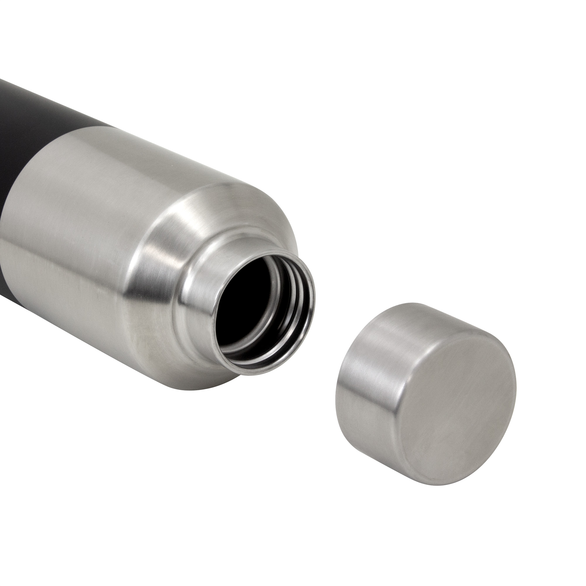 Botella doble pared, sellada al vacío. Tecnología vacuum. Interior de acero 304 y exterior de acero 201. Tapa a rosca de acero 201 con anillo de silicona. Pintura acabado mate en parte inferior. Mantiene por más de 12 hs la temperatura de las bebidas calientes y 24 hs de las bebidas frías.